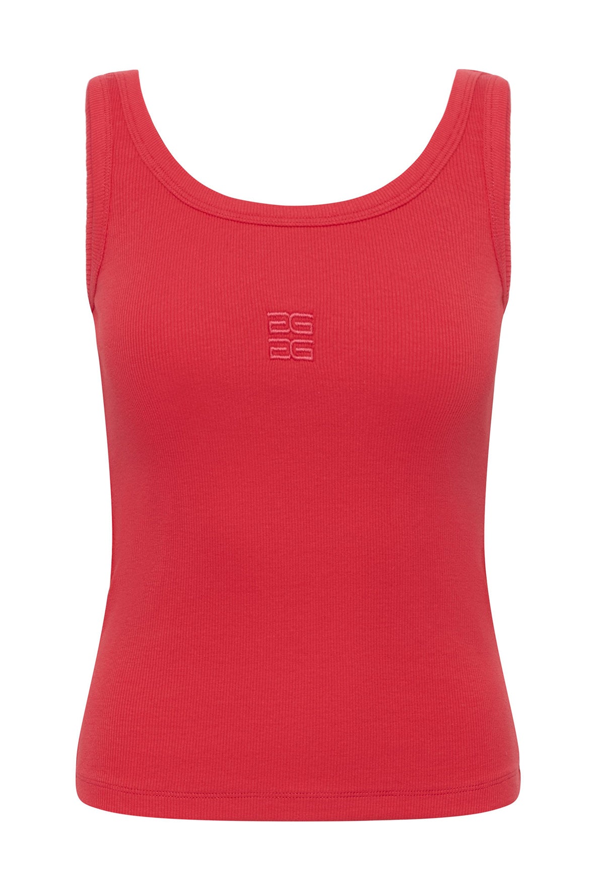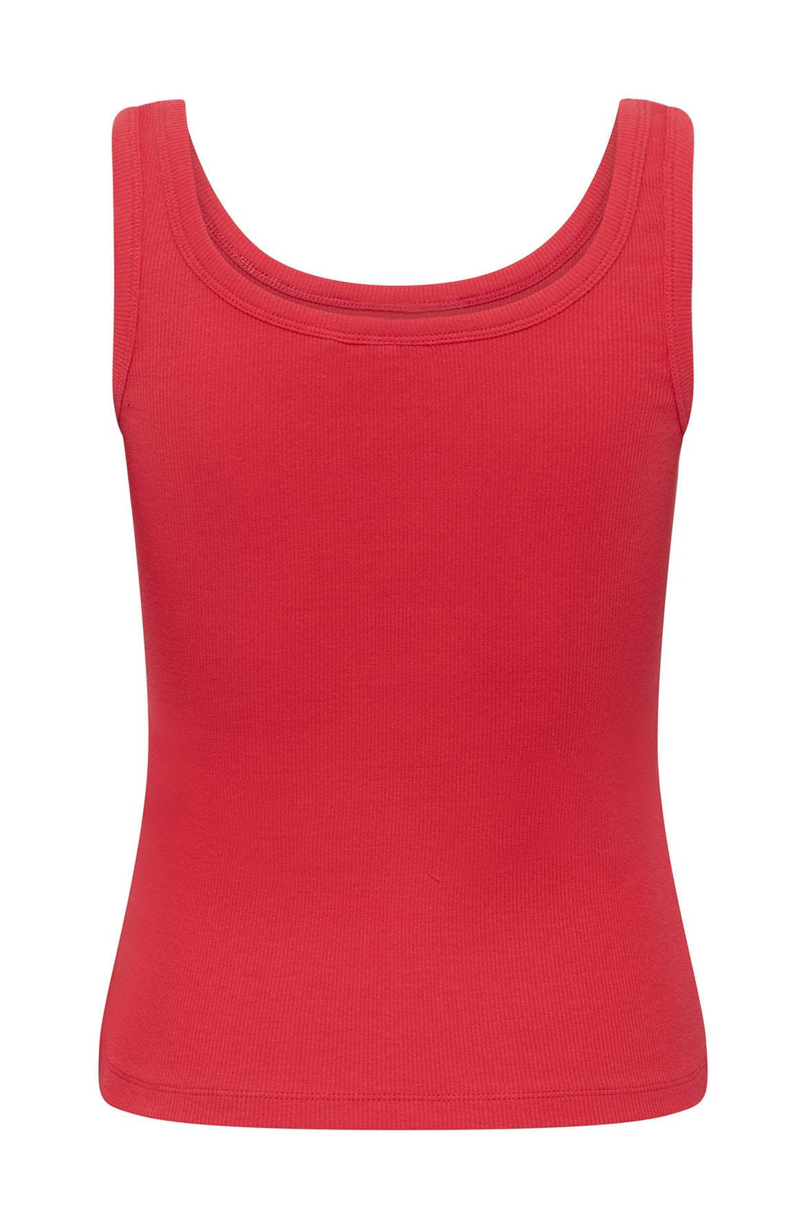 Deze geribde tanktop heeft een lage ronde hals en een aansluitende pasvorm. Subtiele structuur op de borst zorgt voor een moderne, cleane stijl.