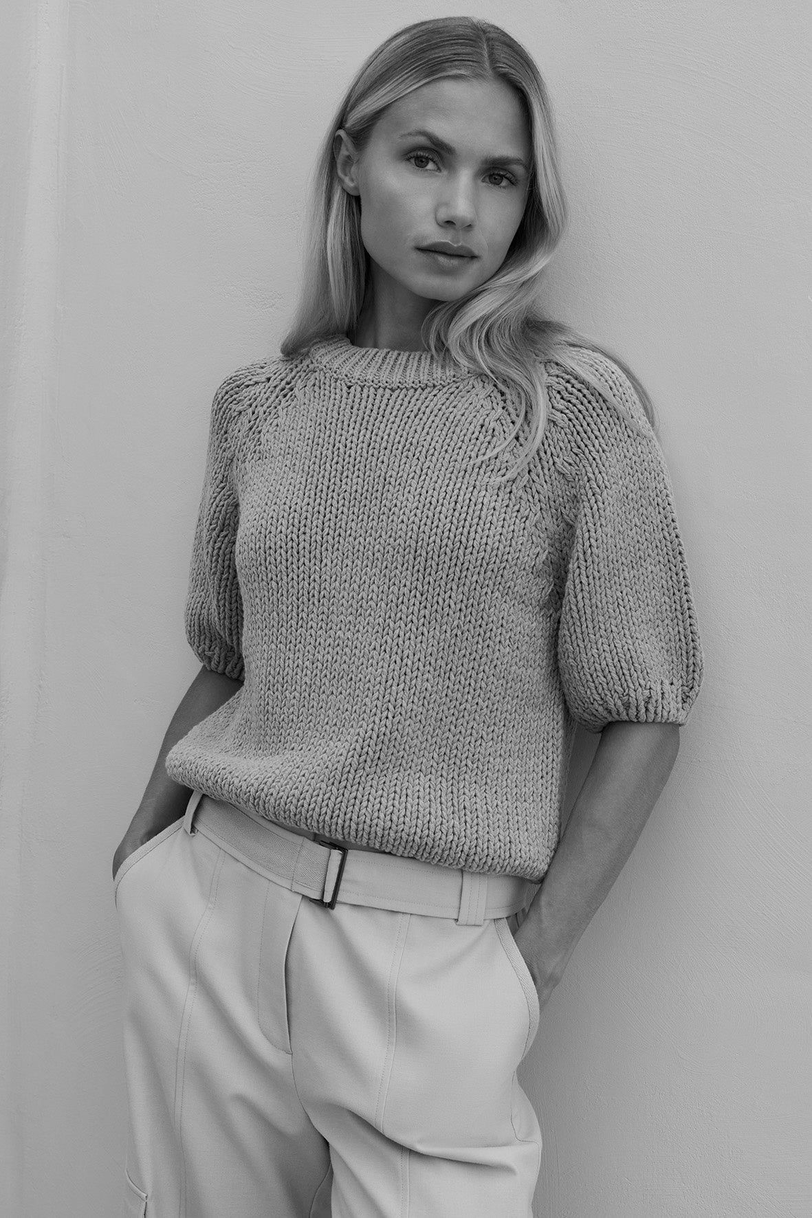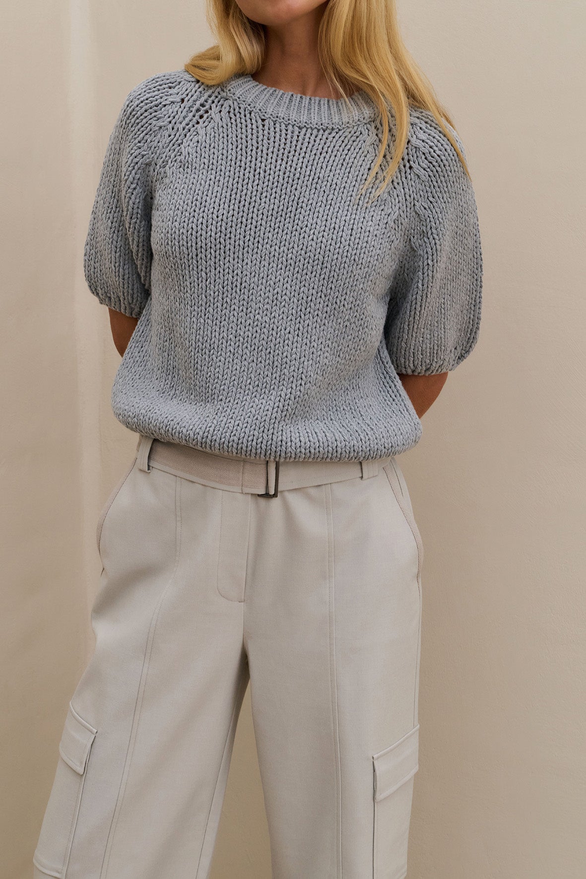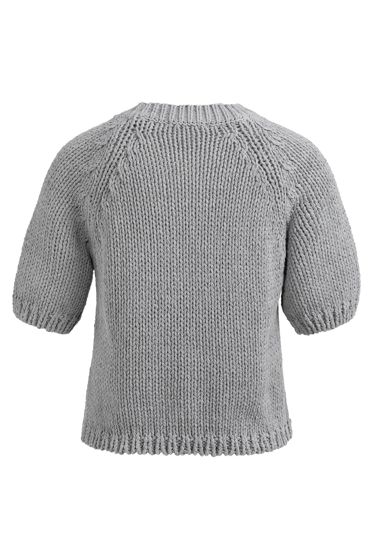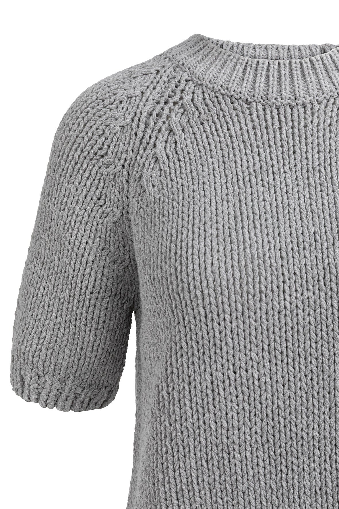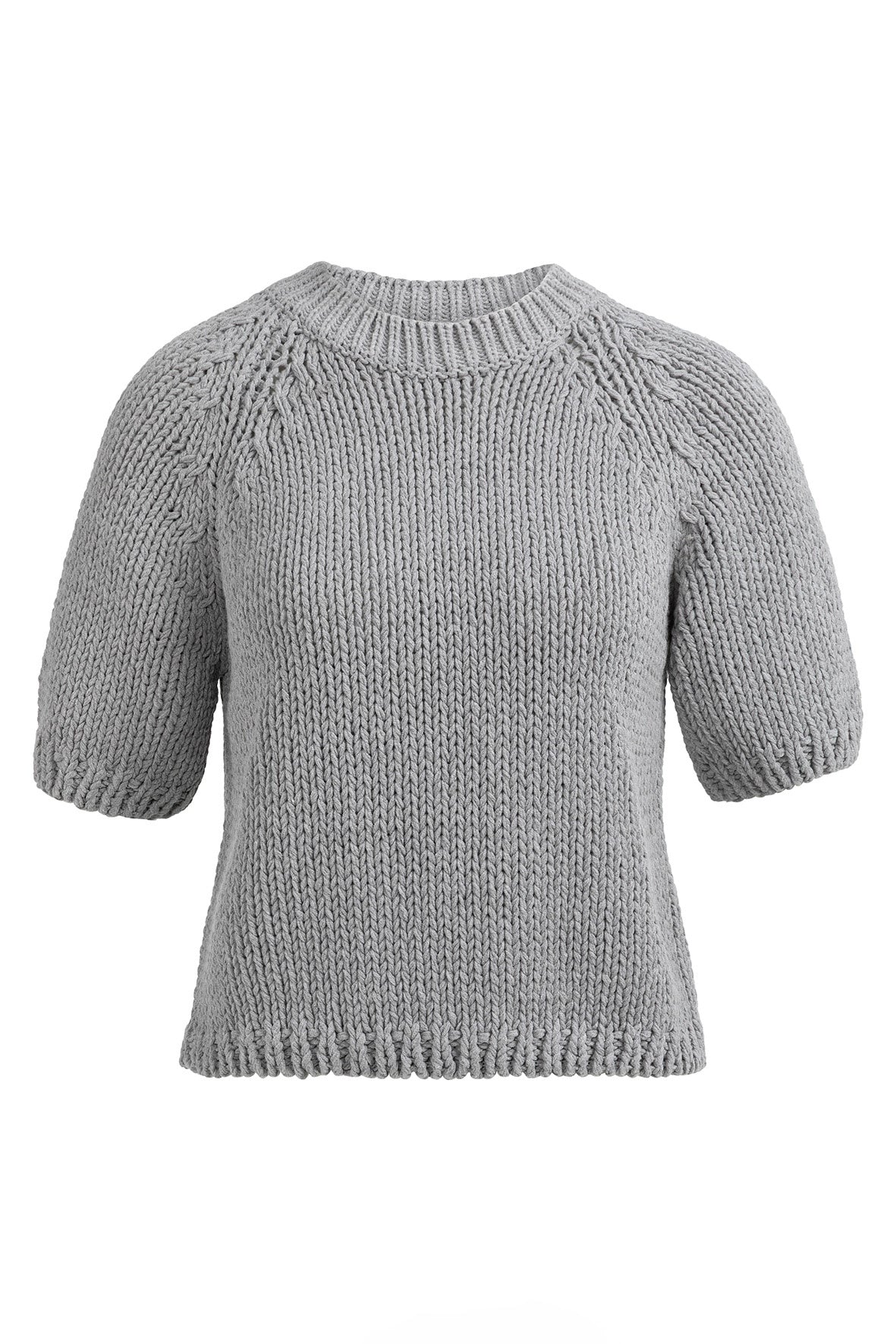 Deze grofgebreide trui is gemaakt van een stevige, zachte stof en heeft korte mouwen en een ronde hals. De raglaninzet en ribgebreide afwerking geven een nonchalante, eigentijdse uitstraling. De normale pasvorm maakt dit item perfect voor een casual look met een stijlvol accent.