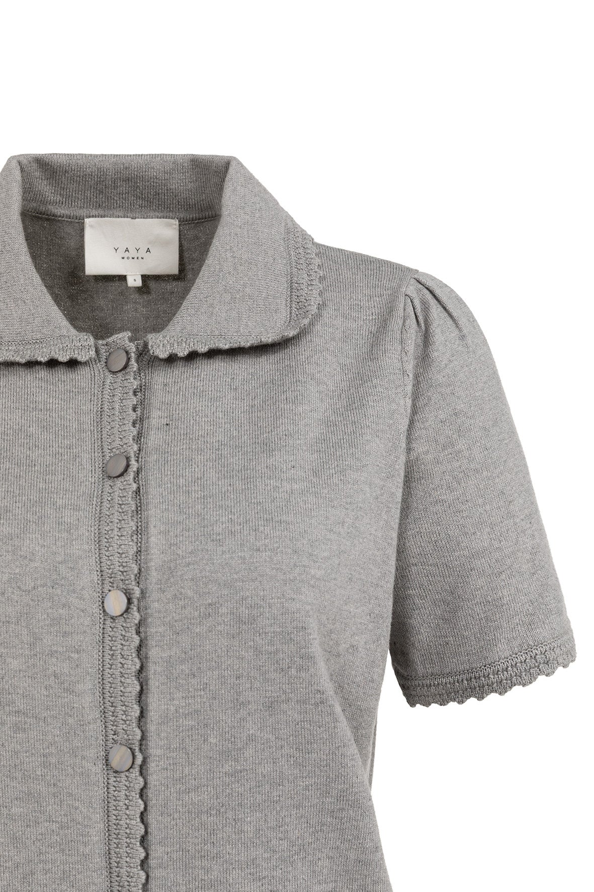 Dit zachte, fijngebreide vest is ontworpen met korte mouwen, een kraag en een knoopsluiting aan de voorzijde. De normale pasvorm en geribde boorden zorgen voor een comfortabele en moderne uitstraling. Gemaakt van een zachte wolmix, perfect als laagje over je favoriete top. Een tijdloos item dat eindeloos te combineren is.