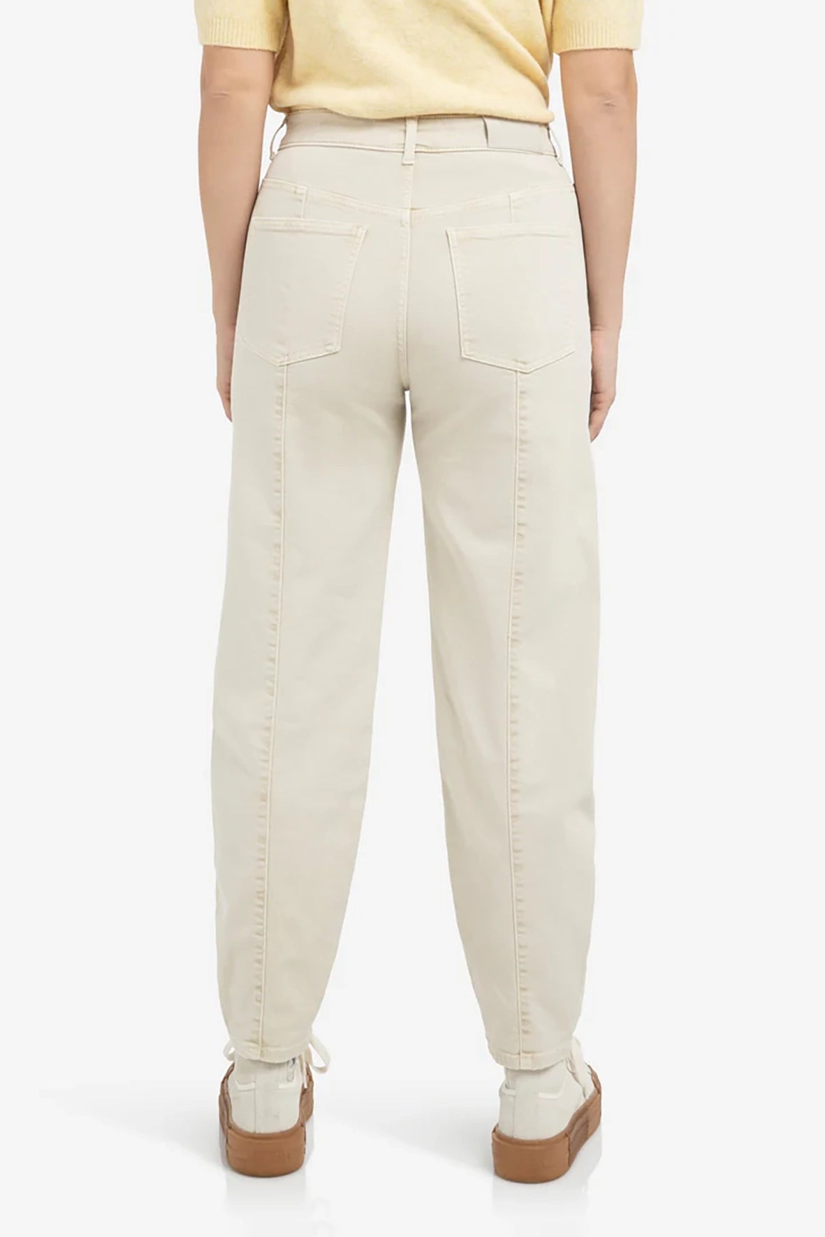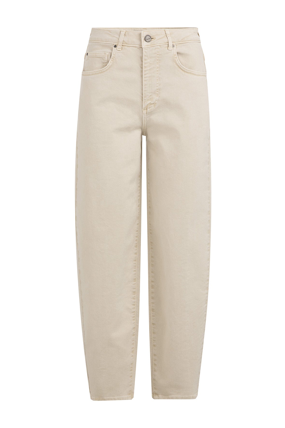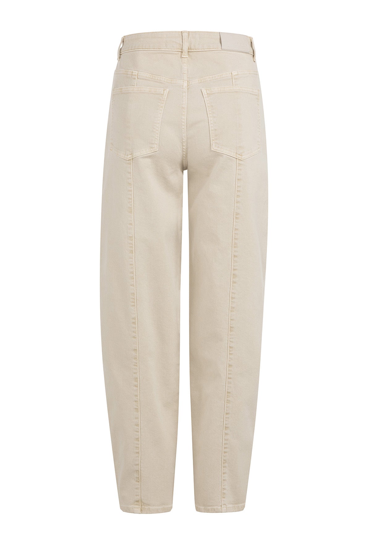 Deze jeans is uitgevoerd in een comfortabele denimkwaliteit en heeft een hoge taille en een losvallende barrel fit. De broek is voorzien van opvallende naden aan de achterkant, steekzakken voor en opgestikte achterzakken. De taps toelopende pijpen geven een eigentijdse look. Een stijlvol en casual item met een lichte wassing voor een zachte uitstraling.