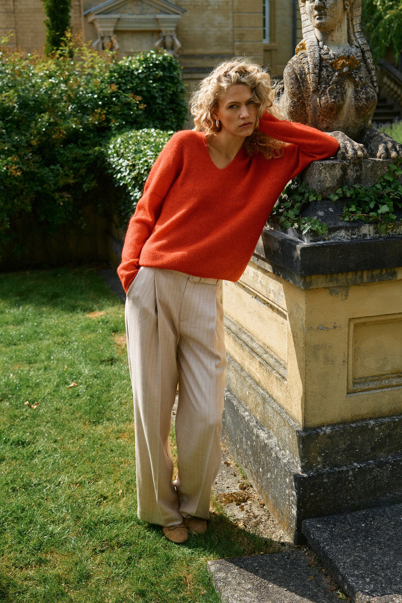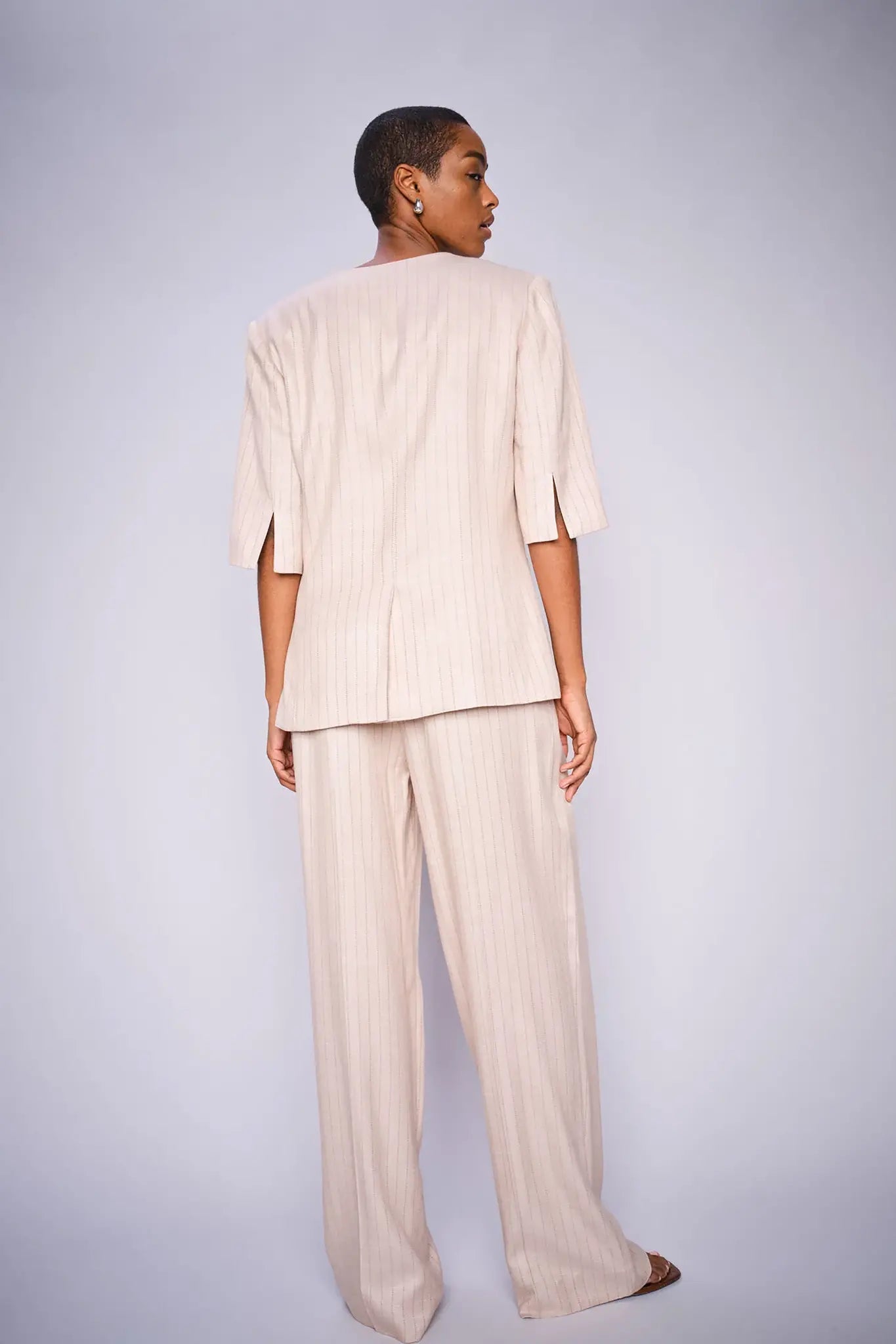 Maak een statement in deze flatterende broek, met een wijde pasvorm en een middelhoge taille. De broek is gedetailleerd met plooien aan de voorkant en een bijpassende riem en is gemaakt van een mix van lyocell, EcoVero en lurex voor een strakke glans en gladde textuur. Style de broek met een stoer breisel of met bijpassend gilet voor een gepolijste look.