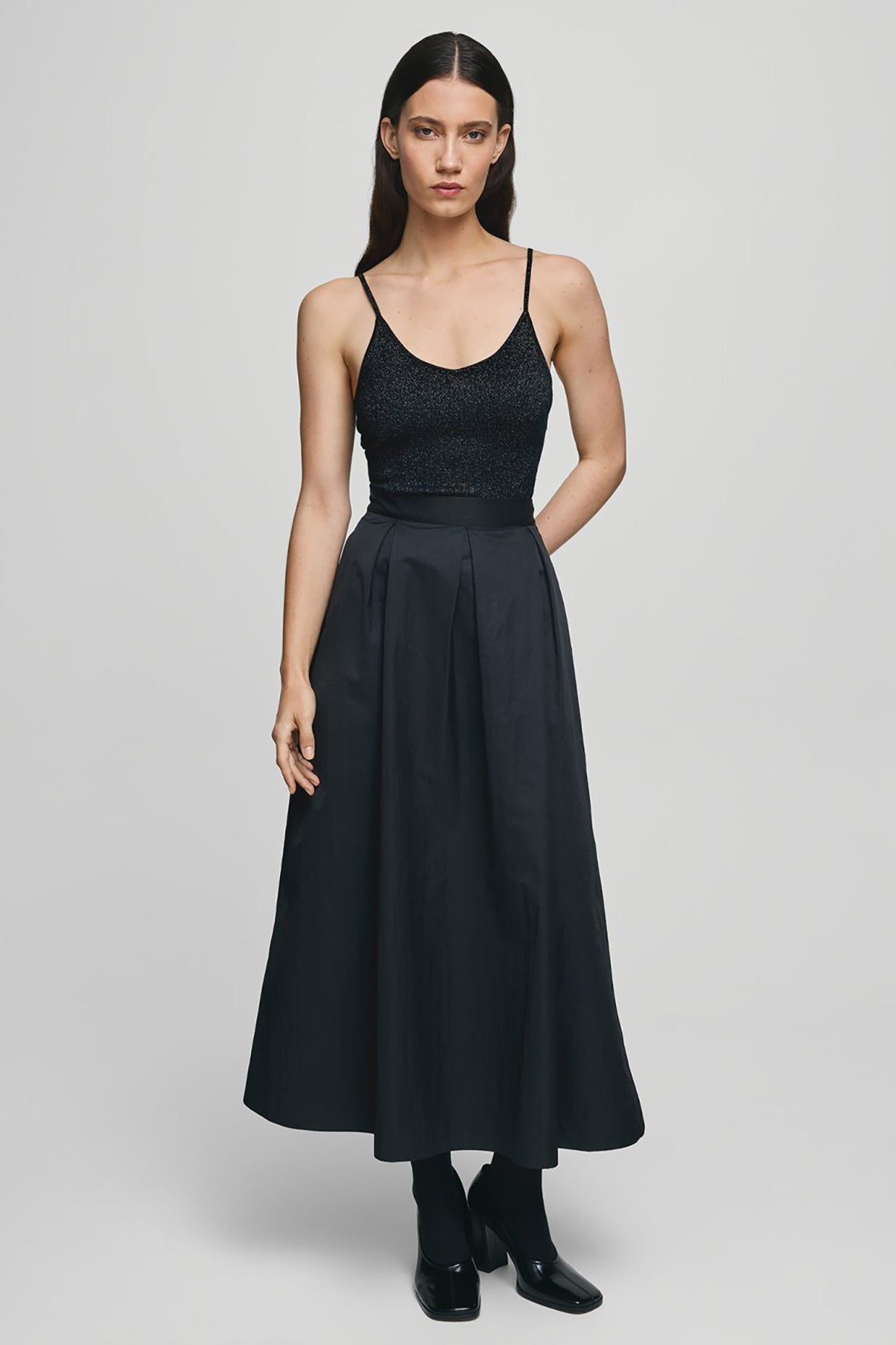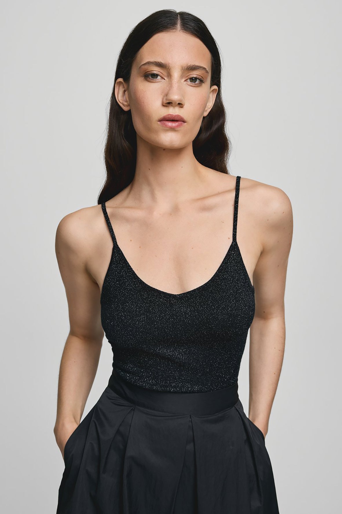 MSCH Eurasia Strap Top is een aangesloten top met dunne bandjes en een subtiel glanzende afwerking. Het strakke design en de rekbare stof zorgen voor een vrouwelijke, elegante look – perfect voor avondgelegenheden of gestyled onder een blazer.