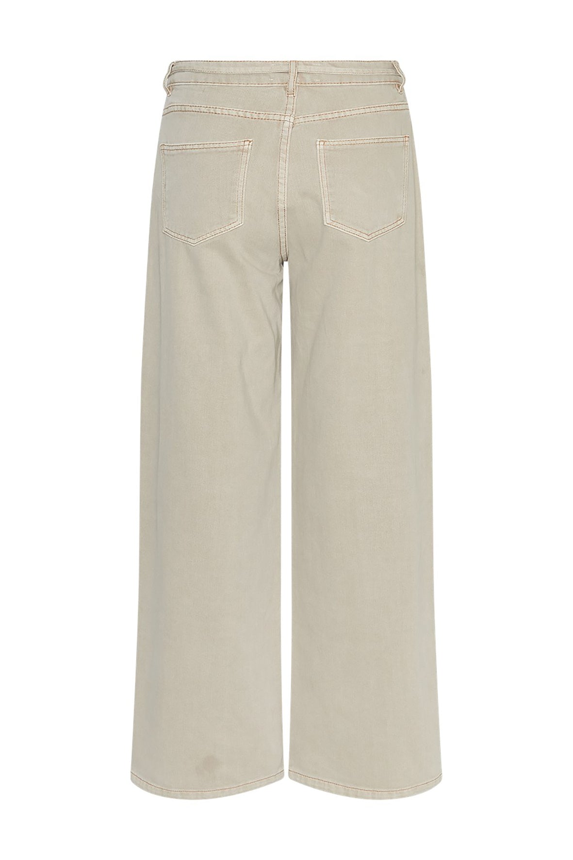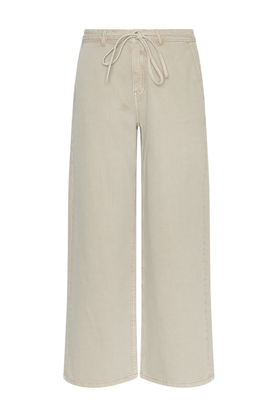 Denim broek in een lichtbeige tint met wijde, rechte pijpen. Ontworpen met twee achterzakken, steekzakken aan de zijkant en riemlussen. De broek heeft een afneembare, dunne strikceintuur.