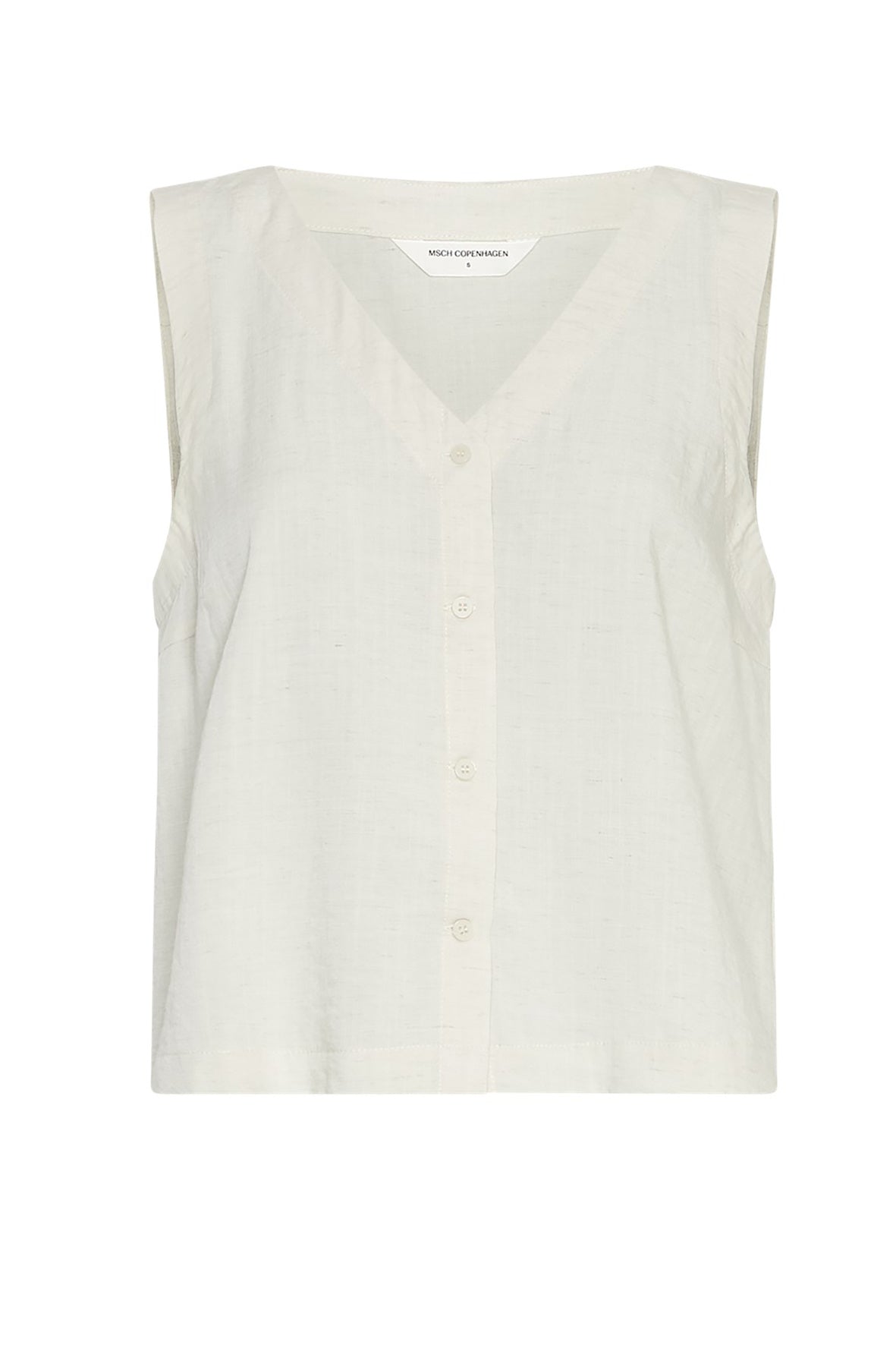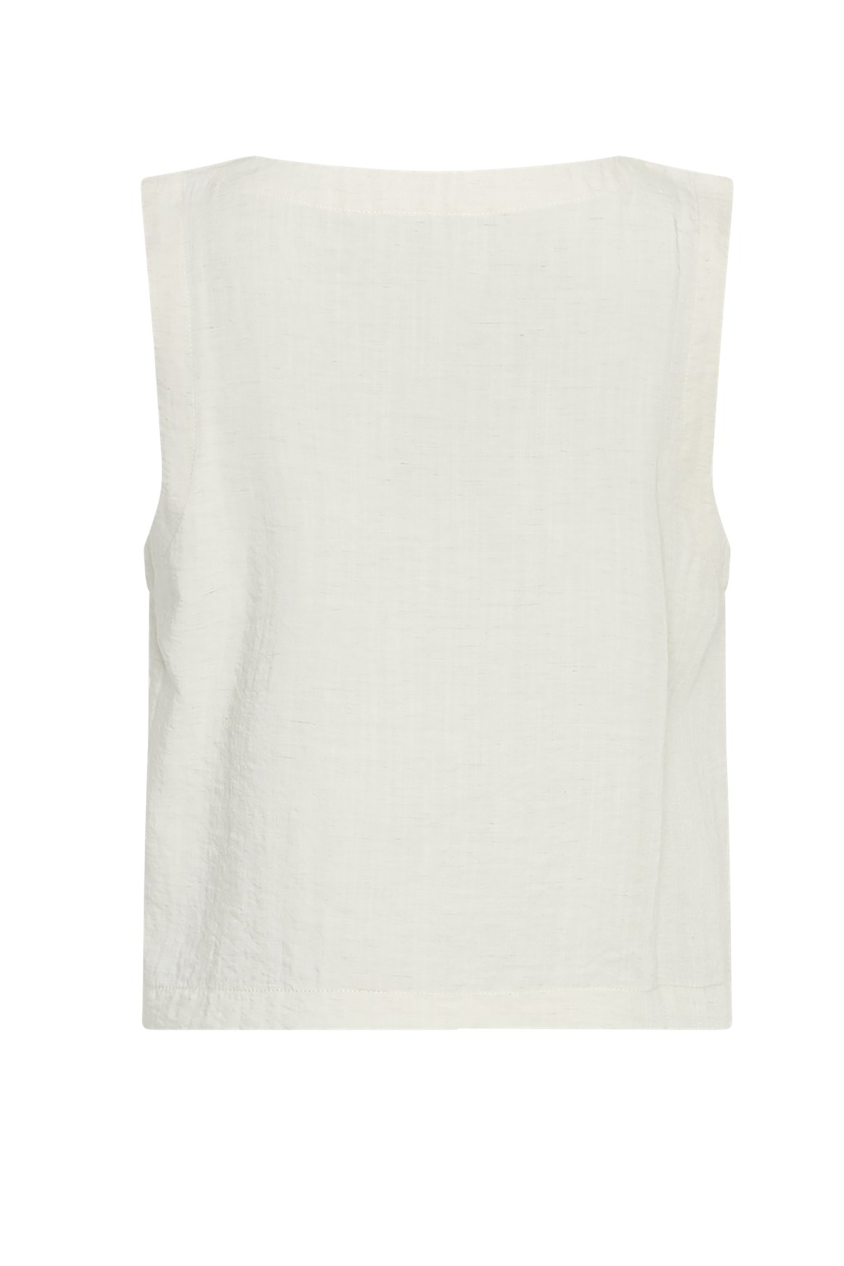 Mouwloos shirt van lichtgewicht geweven kwaliteit. Ontworpen met een V-hals en knoopsluiting aan de voorkant. Rechte snit met een subtiele stofstructuur.