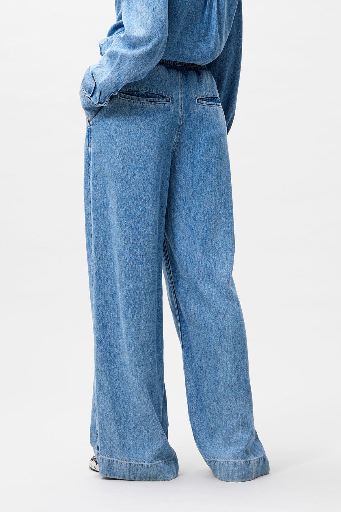 De perfecte mix van stijl en comfort. Deze joggers, gemaakt van zachte lyocell met een denimlook, wijde pijpen en een comfortabele taille door het elastiek.