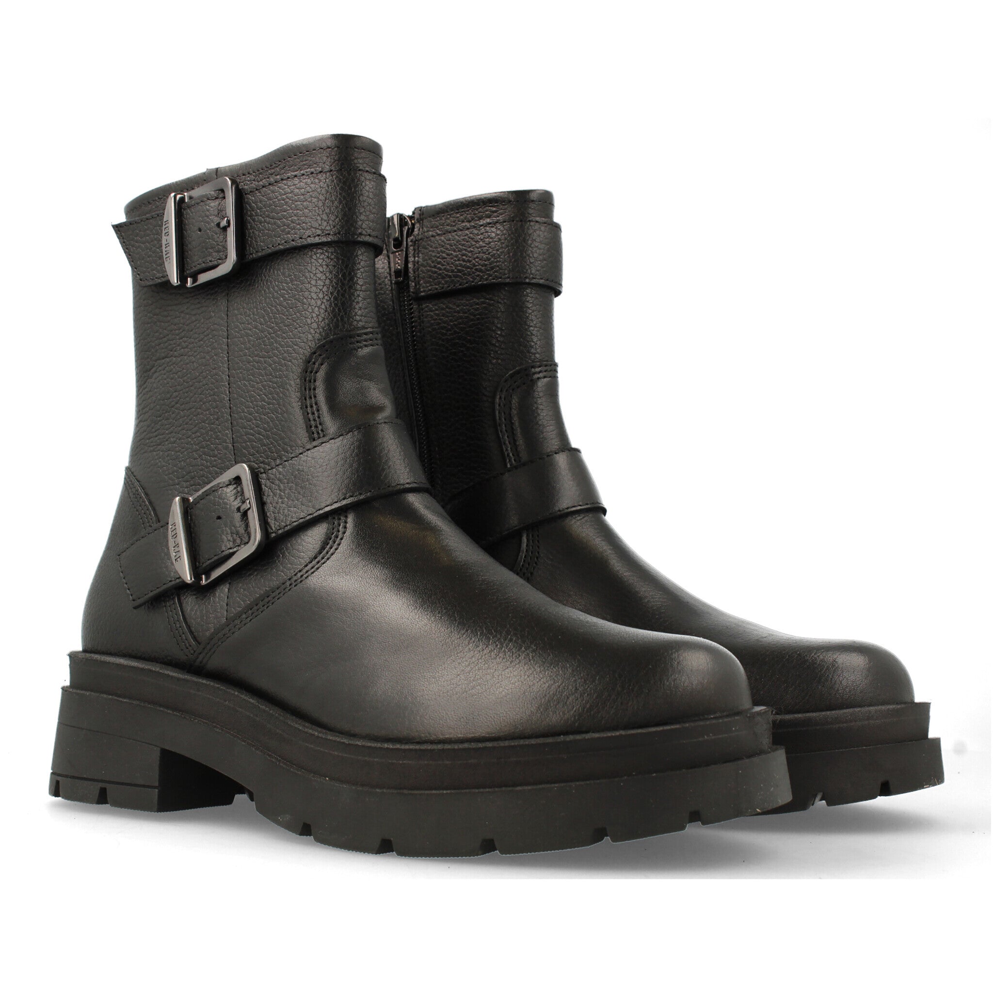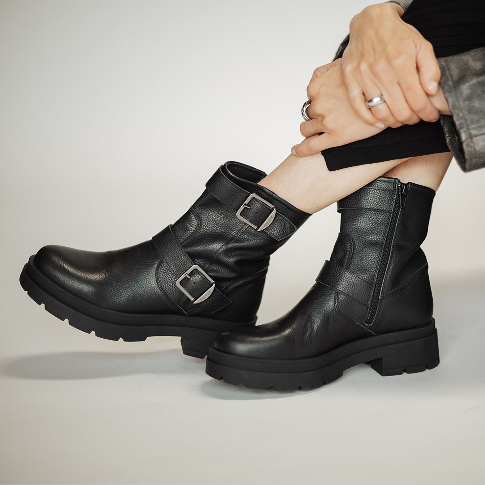 Stoer en stijlvol! Deze leren damesboot met ritssluiting en gespen biedt comfort en een trendy uitstraling in één. Ideaal voor elke gelegenheid, van casual tot chic. Perfect om je look compleet te maken!