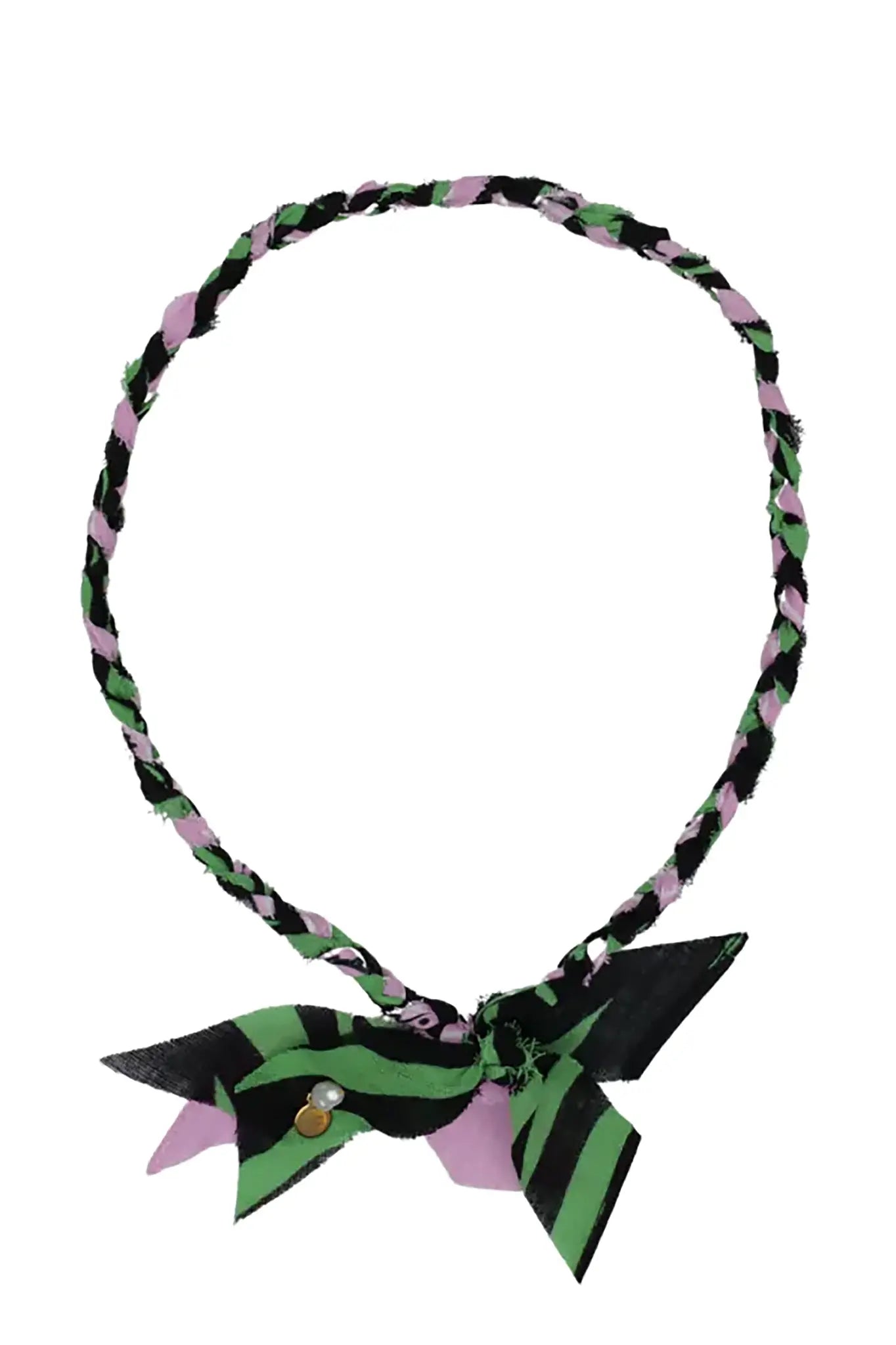 De bandana ketting is een gevlochten ketting, gemaakt van 100% katoen en is in verschillende kleuren beschikbaar. De ketting kan over het hoofd worden omgedaan en bevat een uniek Navalon & Danté logo bedeltje met een roze smiley.