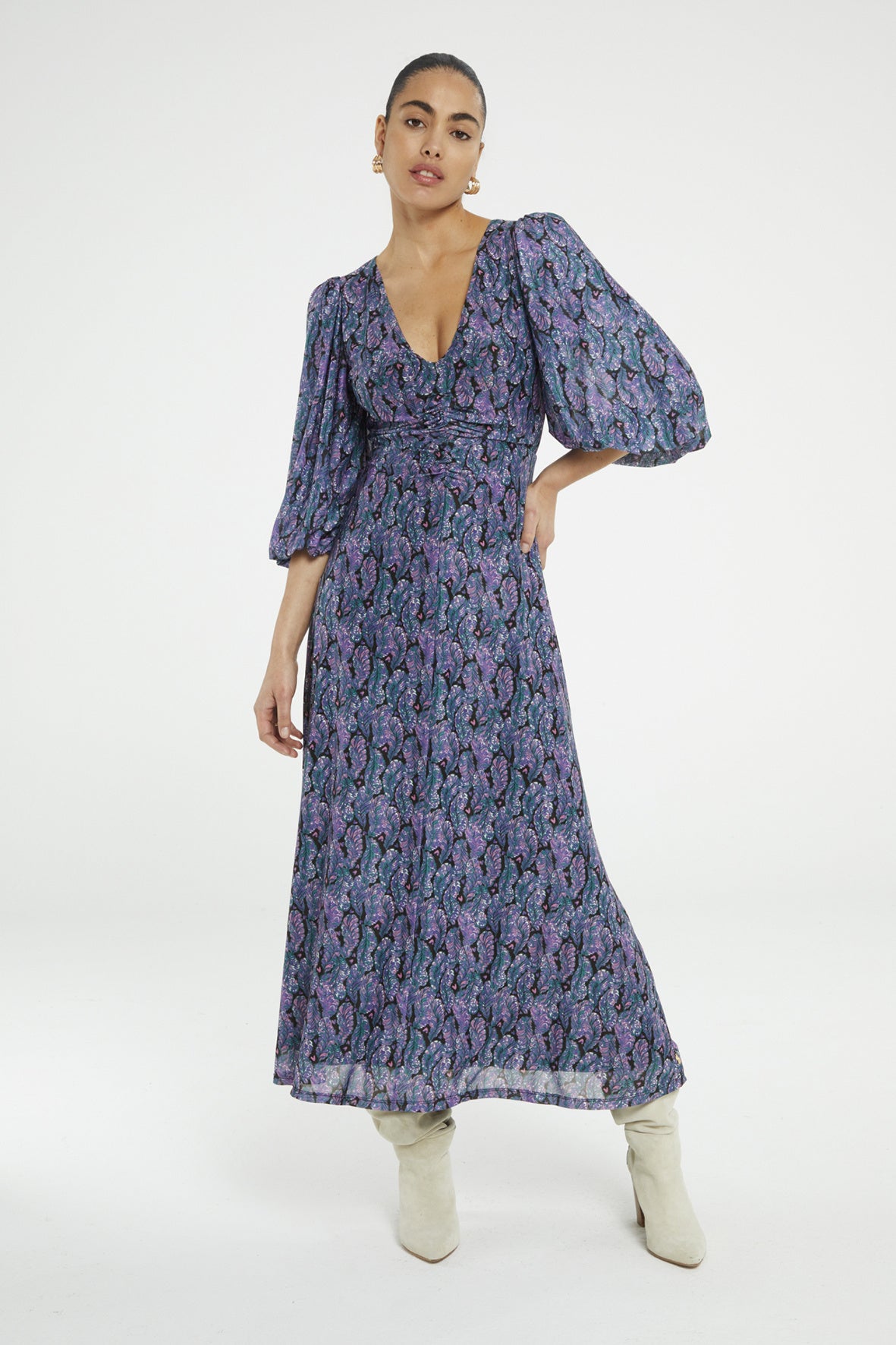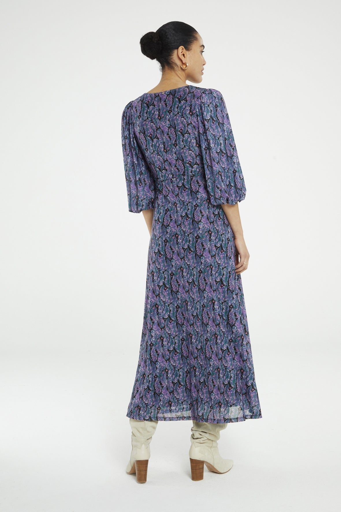 Midi jurk met soepelvallende fit en ballonmouwen met elastieke manchetten. Welma Dress heeft all over "Bye Bye Birdie" print en is gemaakt van Mesh (gerecycled polyester): stretchy, kreukvrij en duurzaam. Ontdek in het waslabel hoeveel flessen gerecycled zijn voor dit item.