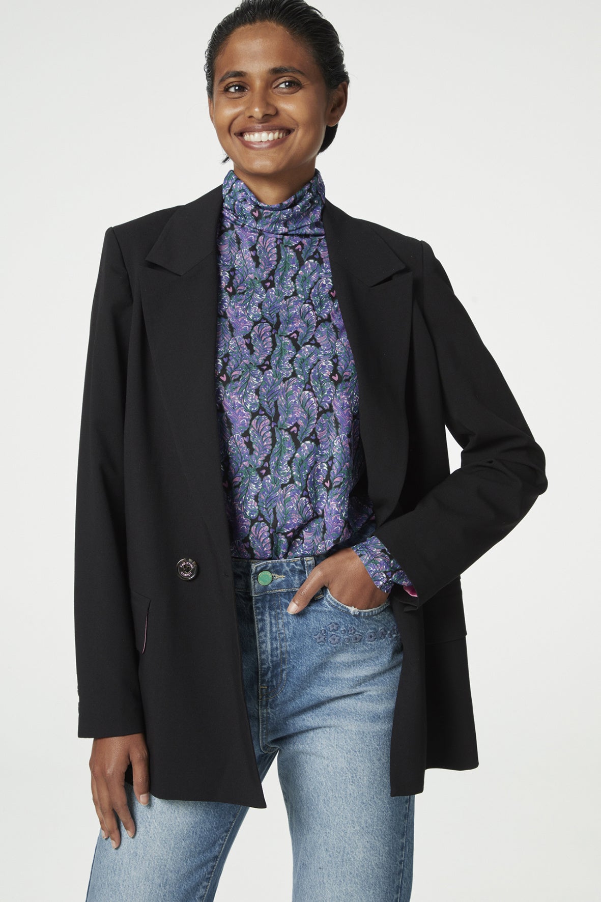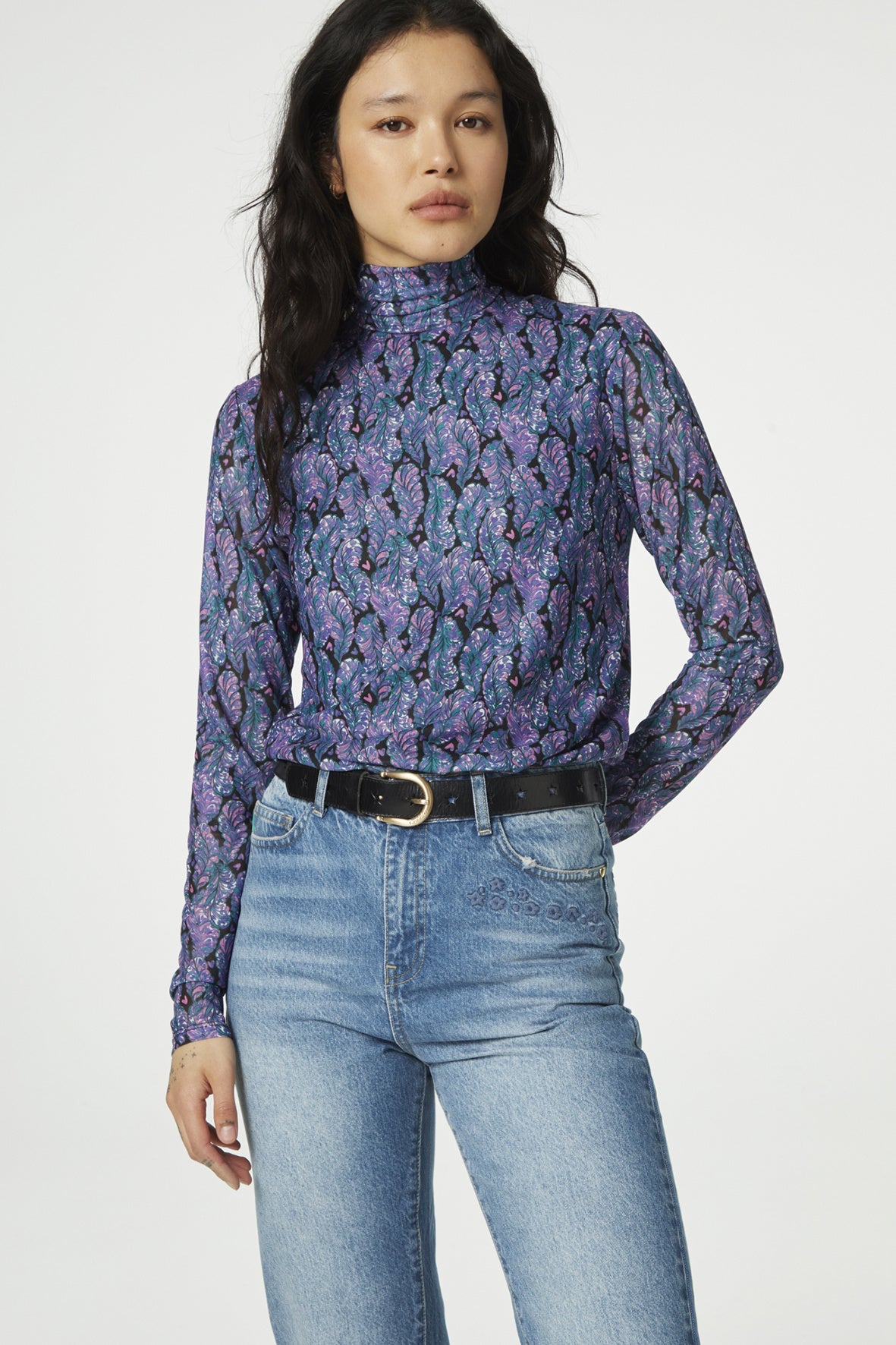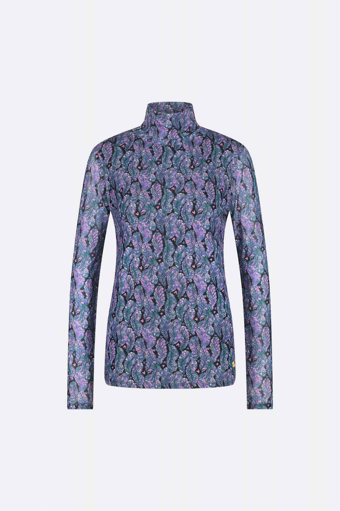 Aansluitende top met turtleneck. Jane Top heeft lange mouwen en een all over "Bye Bye Birdie "print. Dit item is gemaakt van Mesh (gerecycled polyester): stretchy kreukvrij en duurzaam. Ontdek in het waslabel hoeveel flessen gerecycled zijn voor deze Jane Top.