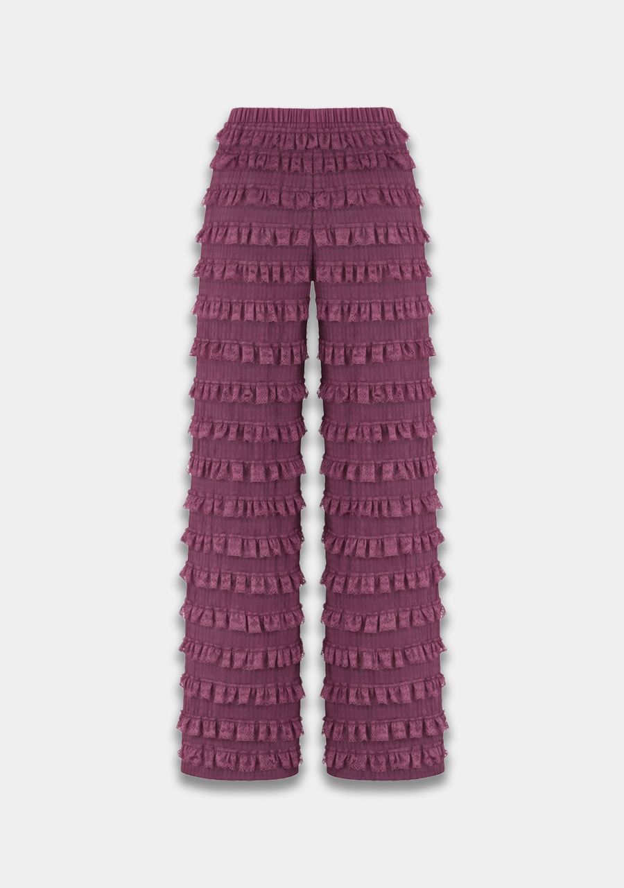 Guess who’s back? De welbekende LO pants is terug — dit keer in de kleur cassis. Dé broek die niet mag ontbreken in je kast voor de komende lente. De elastische tailleband zorgt voor een comfortabele fit, terwijl de luchtige stof soepel meebeweegt met elke stap. De speelse ruches geven de broek die typische Harper & Yve-touch: vrouwelijk en net even anders.