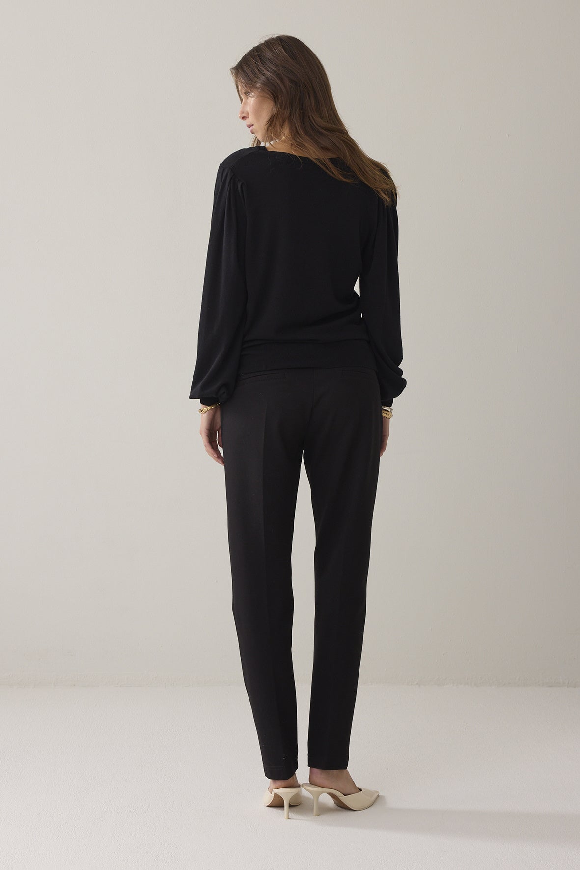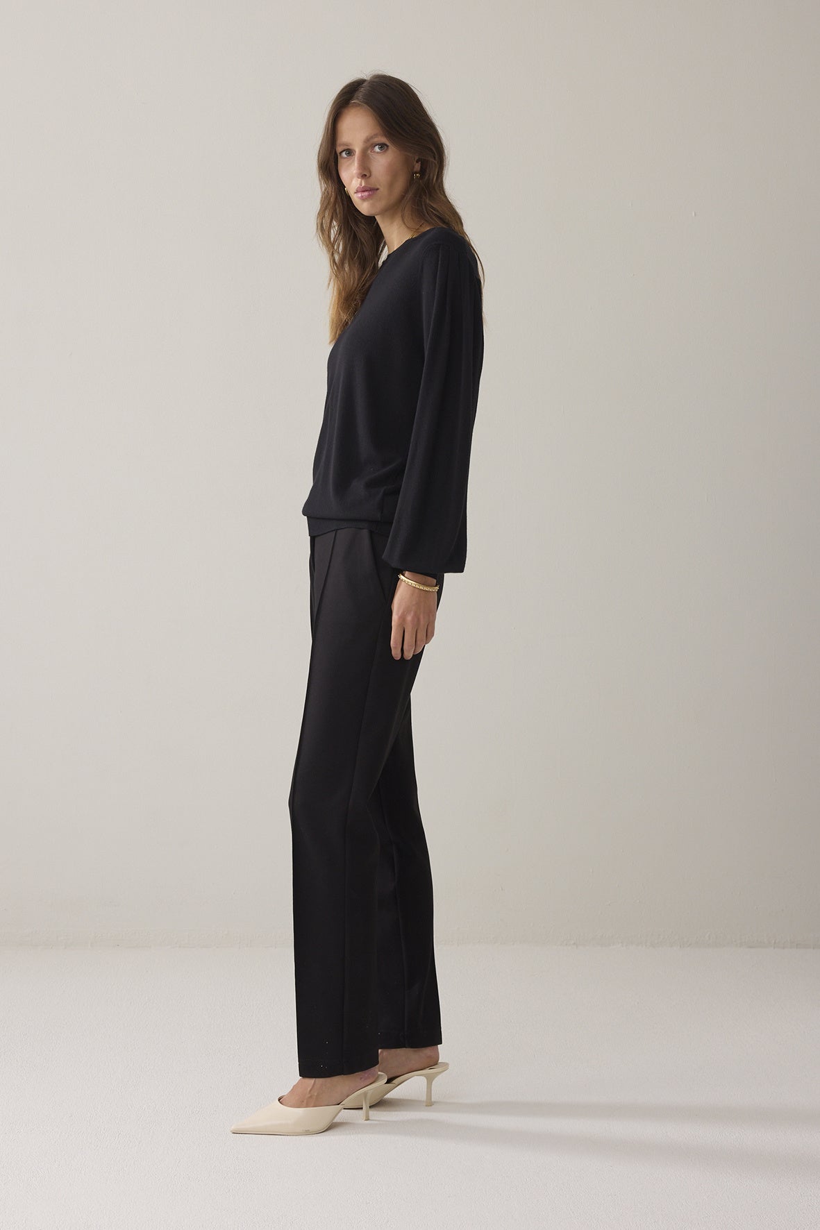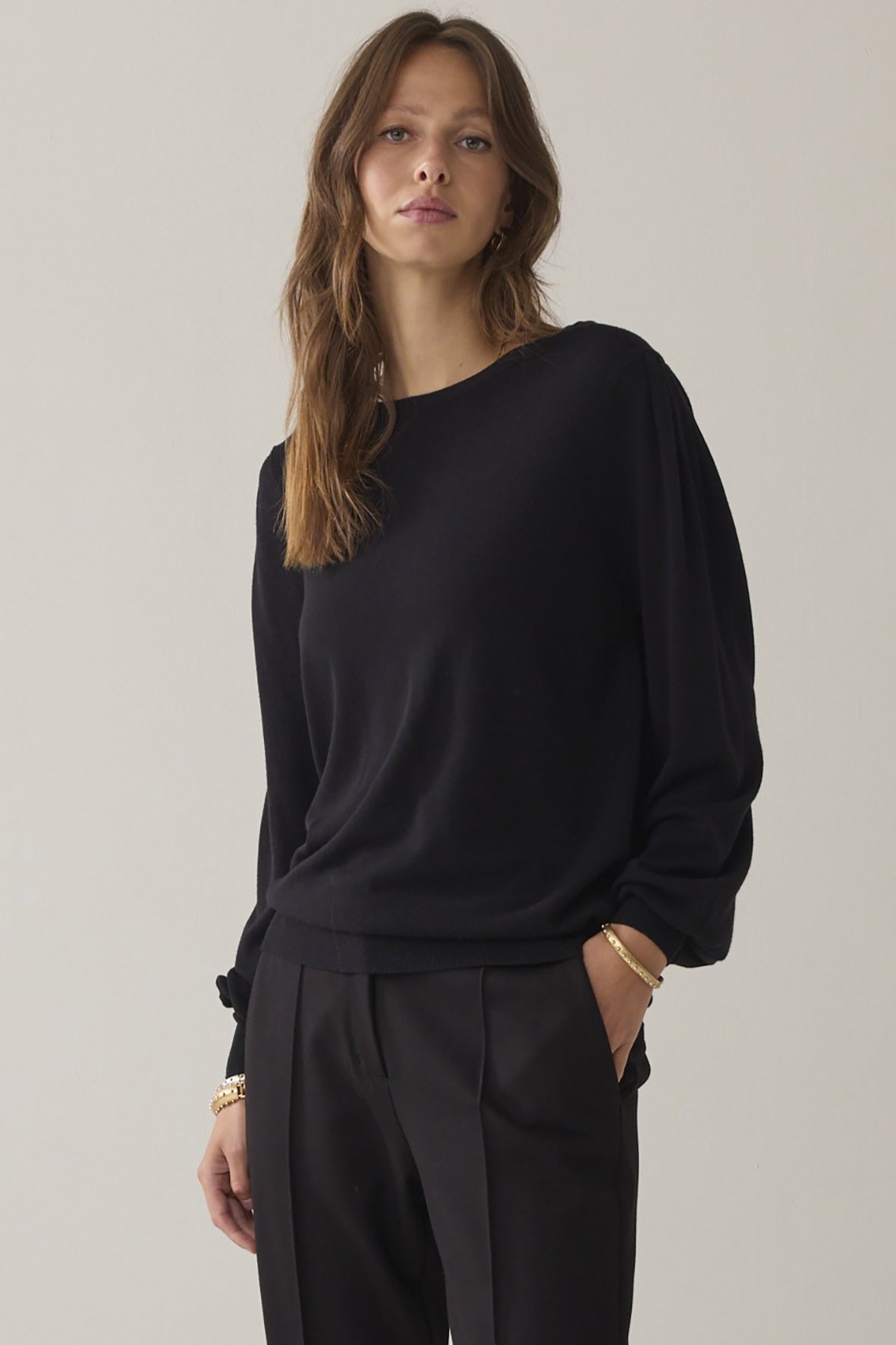 Een oversized trui met een ronde open hals, lange mouwen met plooitjes voor pofeffect en hoge manchetten.Stijlvol en comfortabel... dat is deze trui met pofmouw. Een basic, die eigenlijk te mooi is om basic te noemen. Want de combinatie van zachte viscose en lichte pofmouwtjes geeft deze 'simpele' trui een tijdloze en eigenzinnige uitstraling.