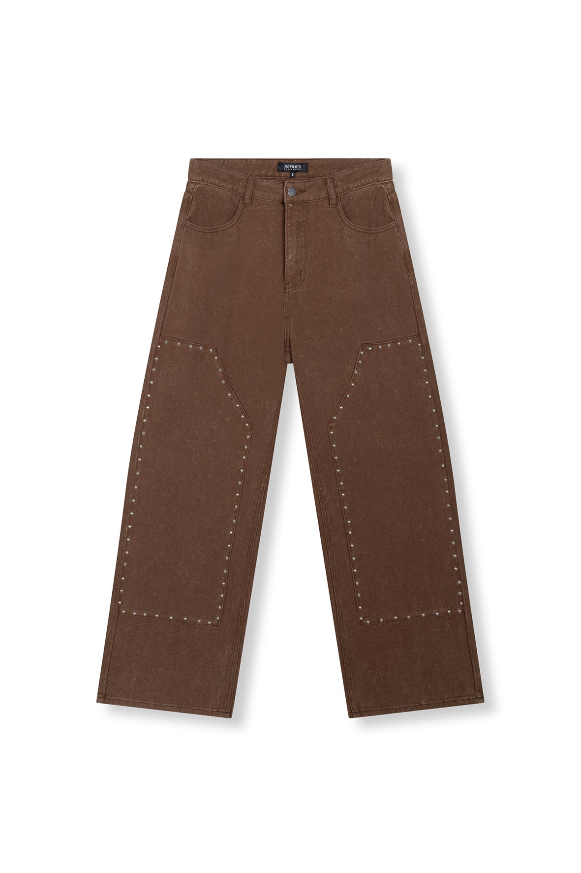 • Relaxed-fit, mid-waist jeans made from brown washed cotton denim.