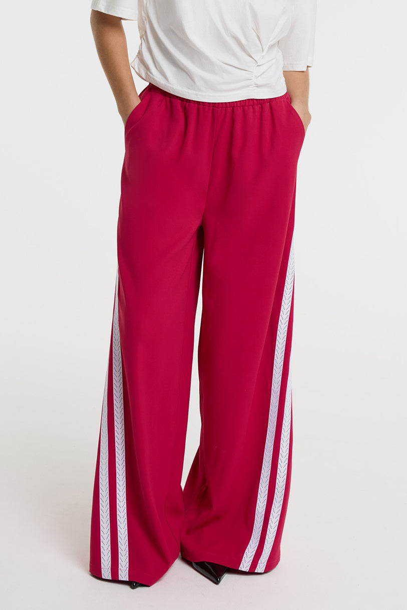 • Broek met hoge taille en wijde pijpen.